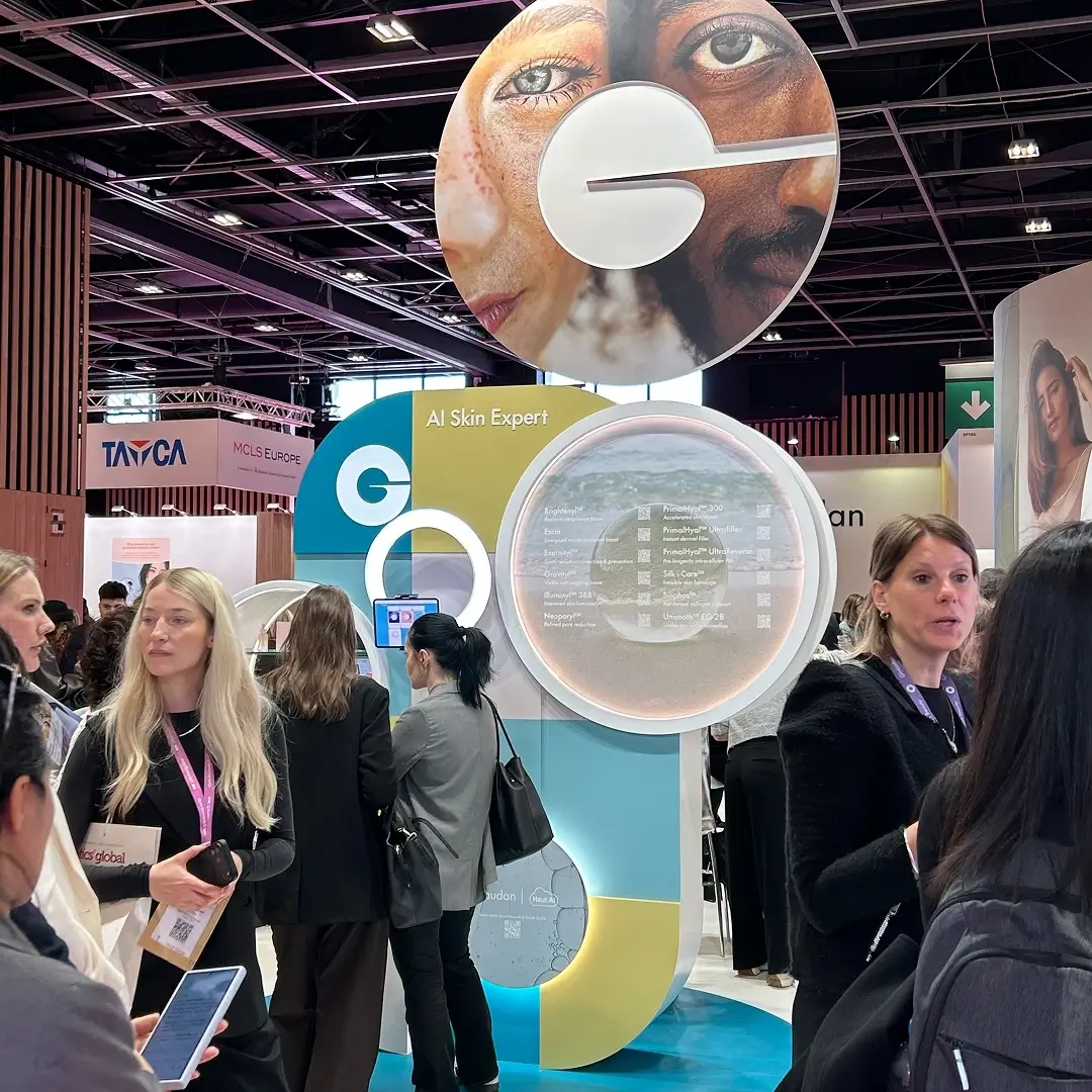 At Givaudan Active Beauty’s booth, visitors could literally see the science work. A live AI-powered facial scan showed in real time how their nerve fiber regeneration active would transform skin over time.