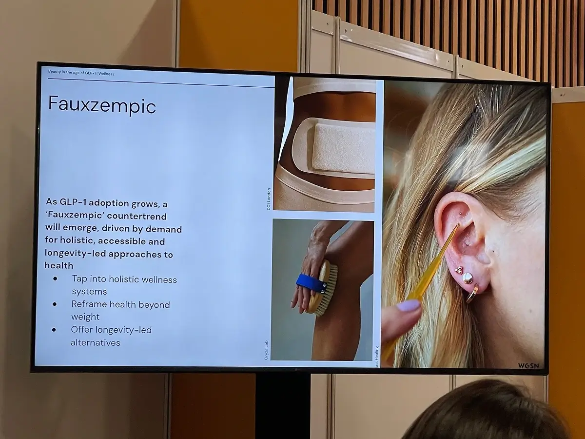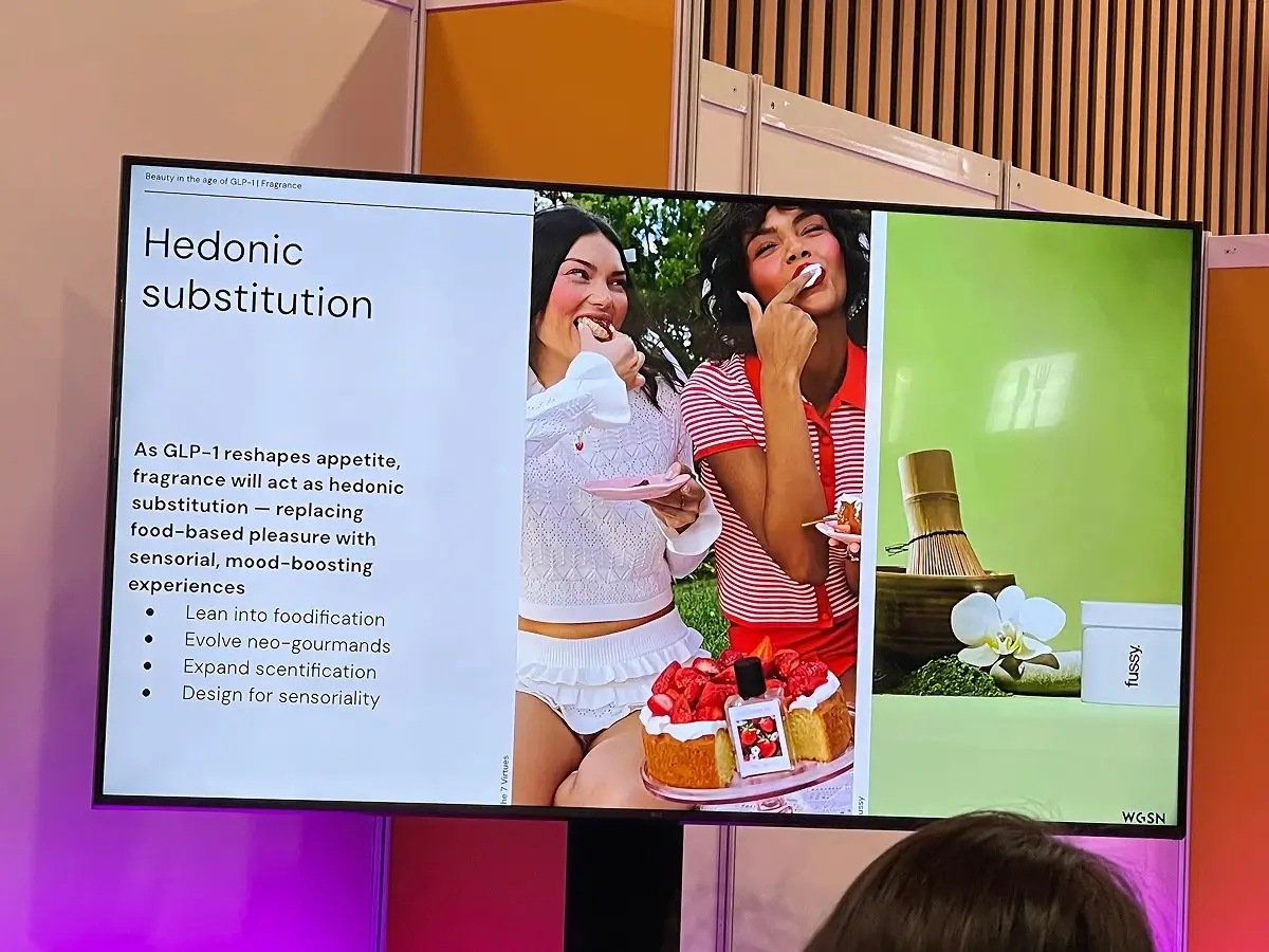Fragrance is also being reshaped. Reduced food intake is driving what WGSN calls hedonic substitution — fragrance filling the sensory and pleasure gap left by changed eating habits. At the same time, nausea and scent sensitivity in higher-dose users is creating demand for quieter, low-intensity formats.
