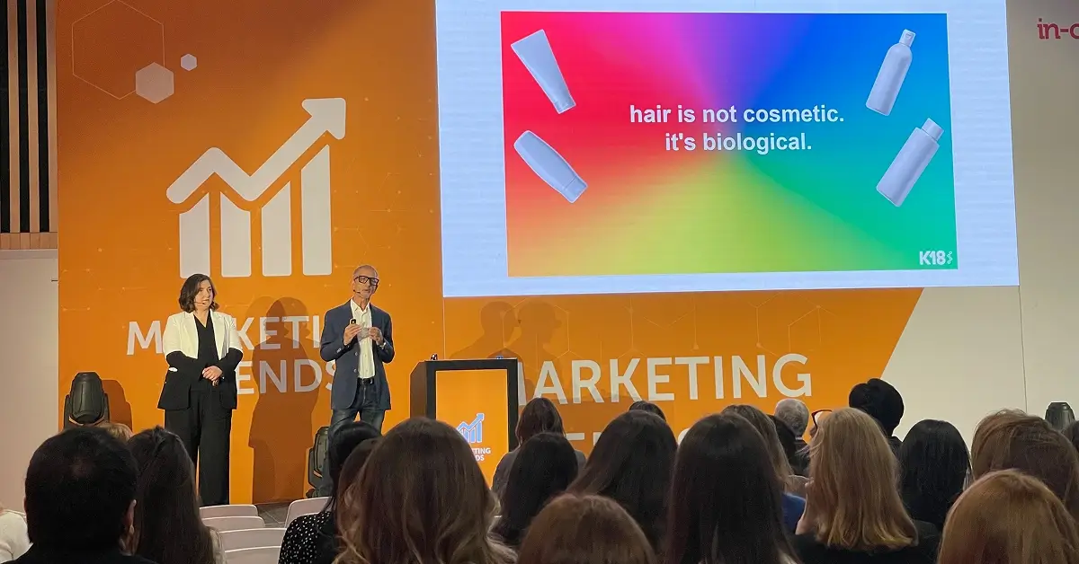This was probably the biggest surprise for me personally. K18‘s session on Day 1 reframed the entire haircare category. They are mapping all 12 hallmarks of aging to the hair follicle — treating hair not as a cosmetic surface but as a biological system with a health span.