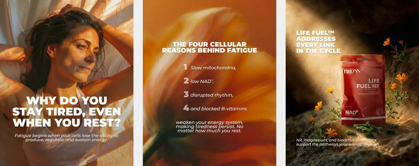 Your customer doesn’t wake up thinking about cell biology. They want to feel younger, stay sharp, recover faster, look good longer, and not fall behind their age. That’s emotional language.