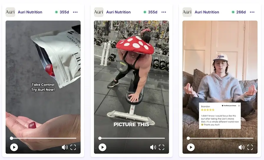 Auri also happens to be one of the top-performing brands in Evolut’s recent ad research project, where we analyzed the most effective supplement ads from over 50 DTC brands.